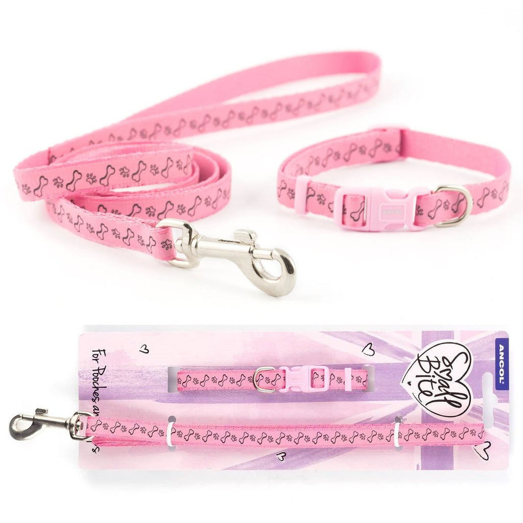 Ancol Puppy Small Bite Dog Collar & Lead Set Paw 'n' Bone Pink