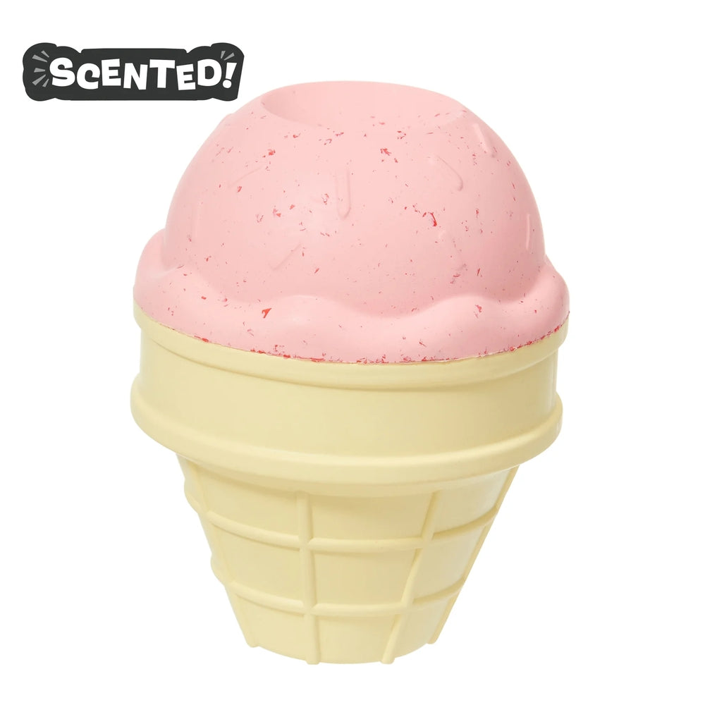 Here’s the scoop on this tough ice cream dog toy: dogs love the strawberry bacon scent as well as the cone’s unique, gnawsome texture! Don’t be afraid to drop this ice cream—the wacky bounce is a nice treat for fetch fans. Determined chompers will also get a special surprise when they bite down: a satisfying deep squeak!
