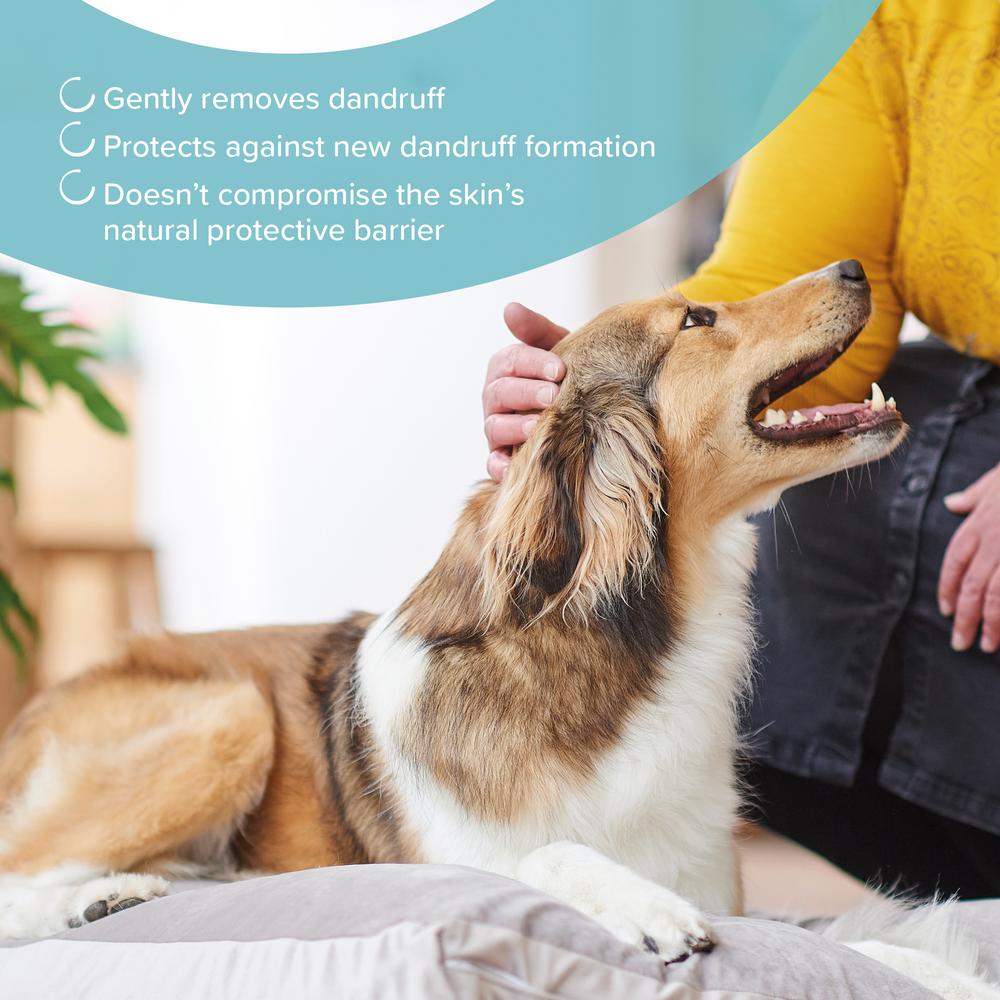 - Gently cleanses the skin and coat of pets suffering from dandruff