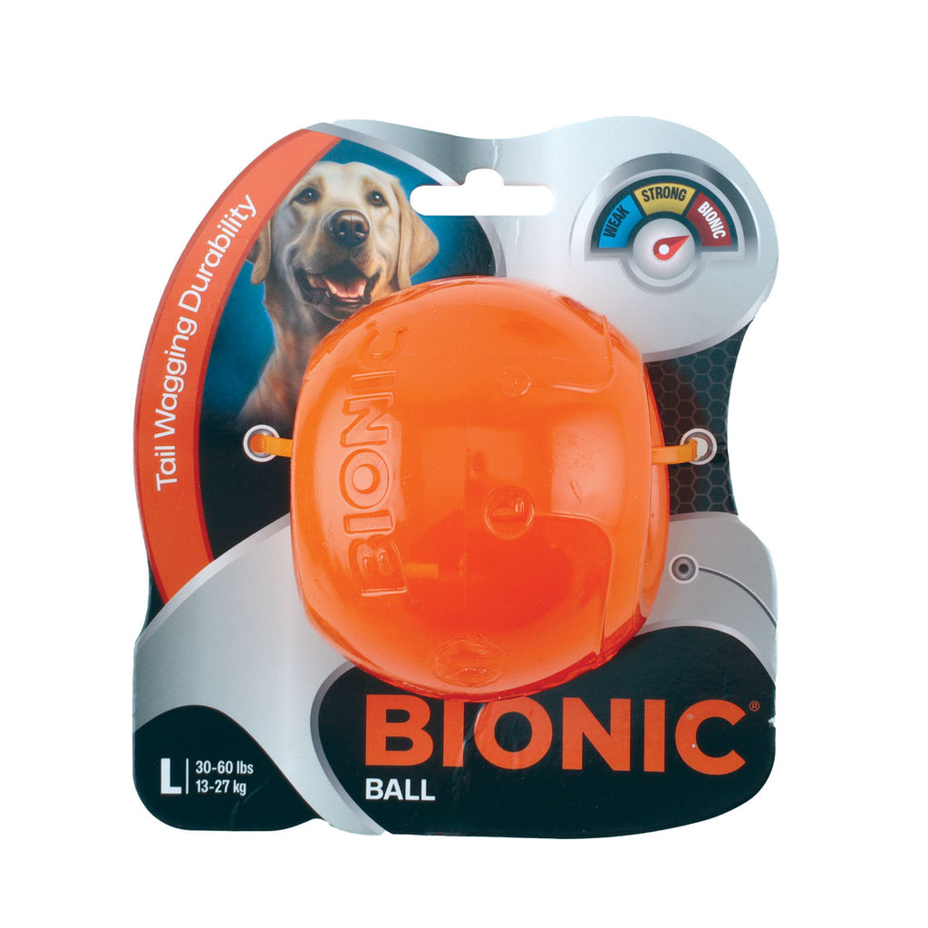 MORE WAYS TO PLAY: The BIONIC Ball has great bounce, can float and has a bright BIONIC orange coloring for visibility. It’s great for fetch, and both indoor and outdoor play. The medium size BIONIC Ball is sized to fit most ball launchers and throwers.