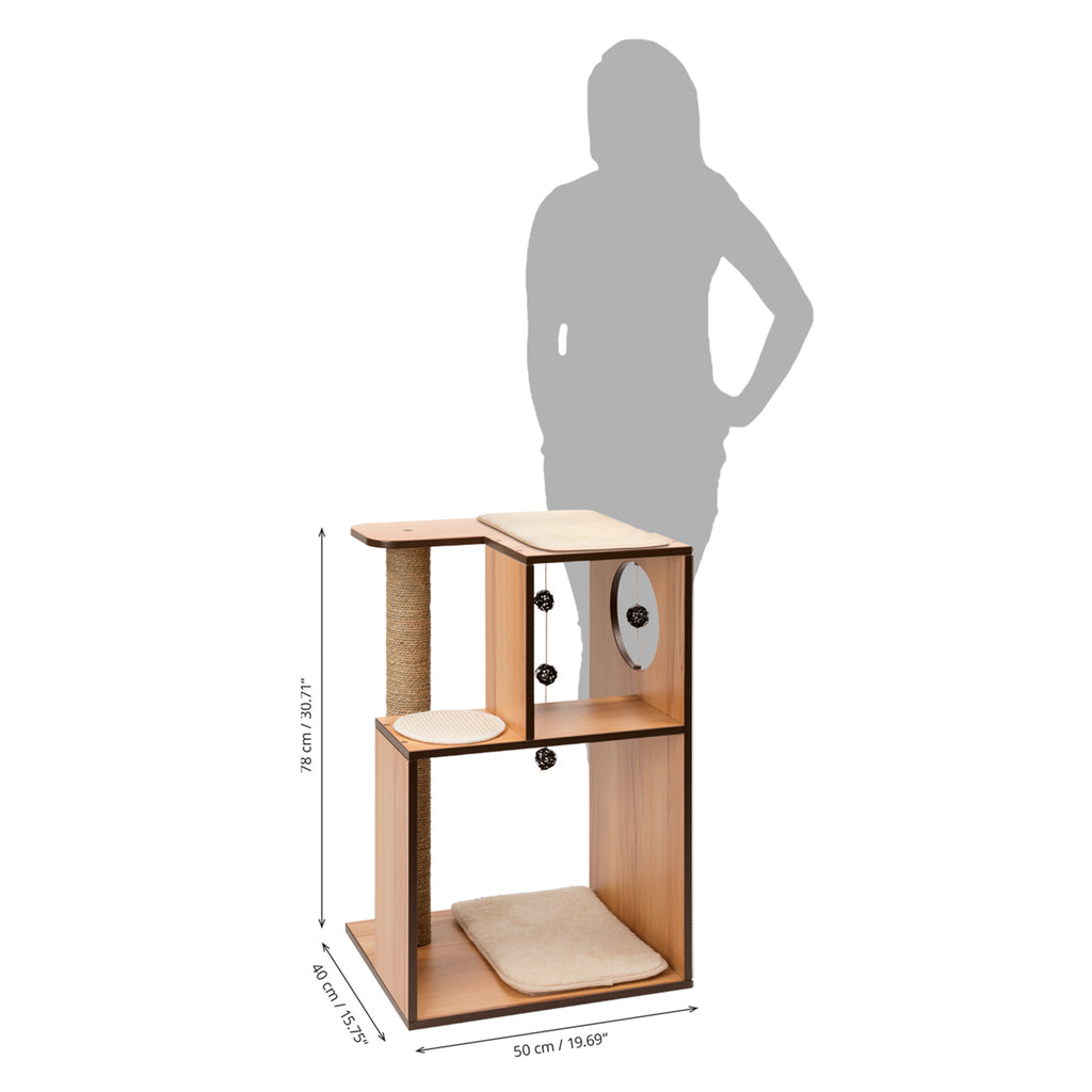 Multiple levels and lounging spots offer the opportunity to relax and play while the extra-long scratching pillar invites your cat to sharpen its claws in an elongated posture.