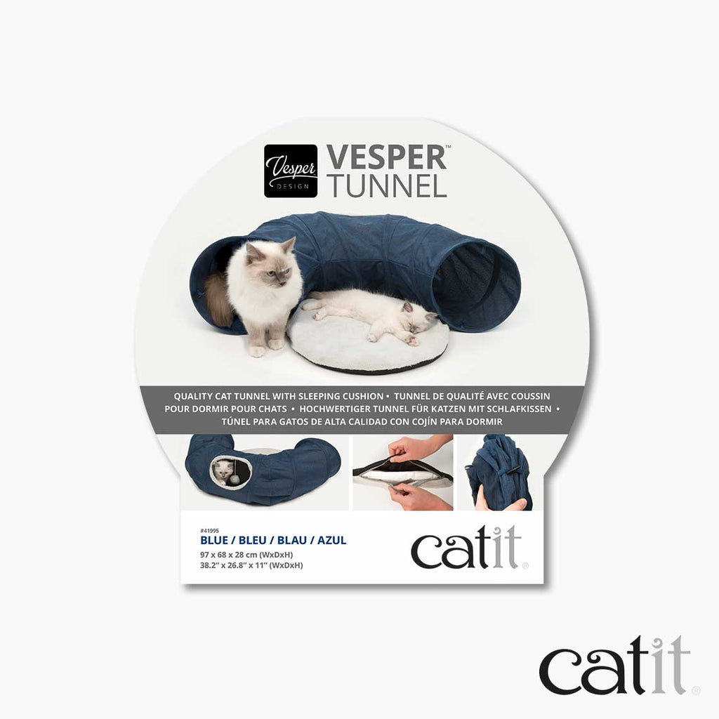 The tunnel is washable, fully collapsible and very easy to store. Catit offer two modern colours, blue and grey which will fit any home interior just like other Vesper products.