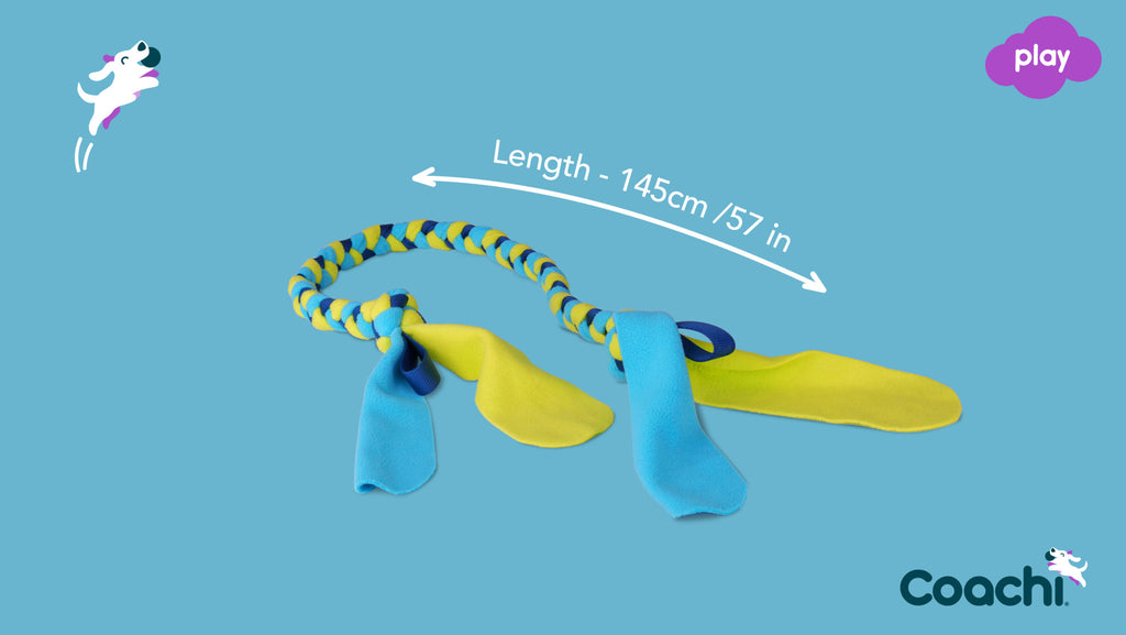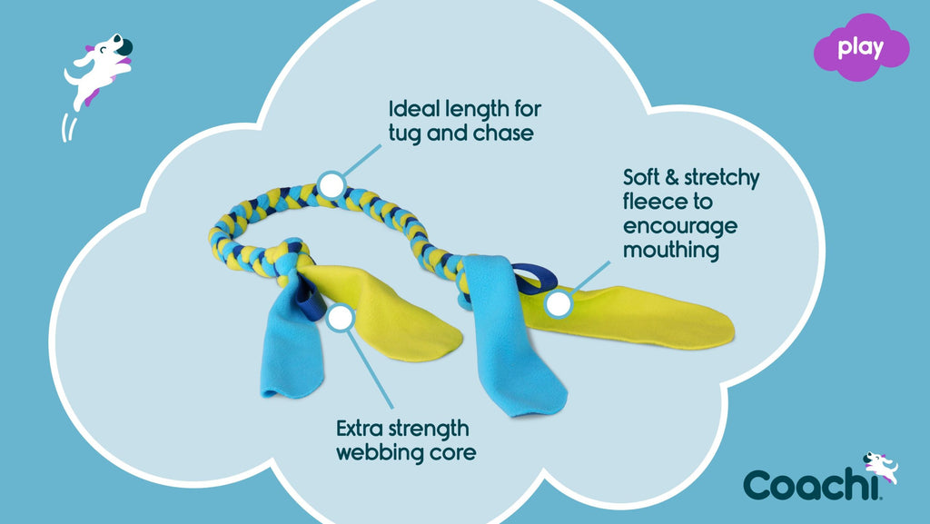 The Coachi Tuggi Tug is great for playing tug and also as a fun and enticing toy for games and rewarding recall, it can also help interrupt play biting & chewing.