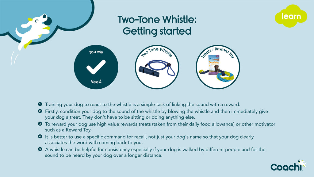 Whistles are great for recall training as they help to standardise commands and are really useful if different people are training or walking the same dog.