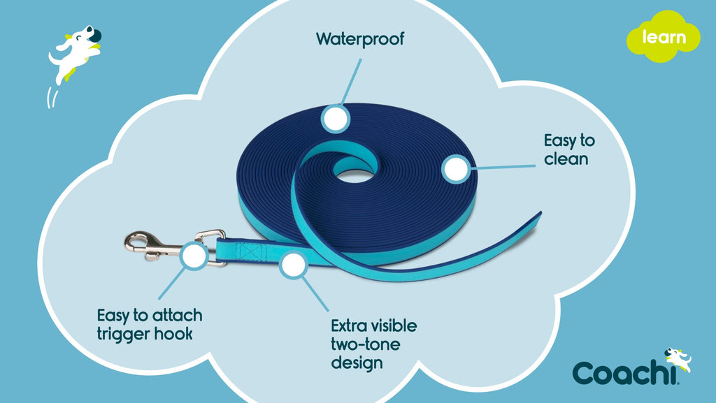 The Coachi Training Line, is great for safe training outdoors. It allows you to give your dog more freedom whilst keeping control in new situations, perfect for puppies, newly acquired and nervous dogs.
