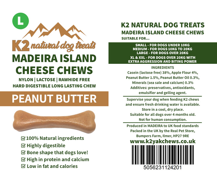 K2 Madeira Island Cheese Chews Peanut Butter - HARD LONG LASTING CHEWS - like Yak chews with fantastic digestibility