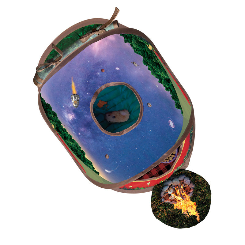 - Cozy outdoor “glamping” scene for hiding, napping, and play sessions
