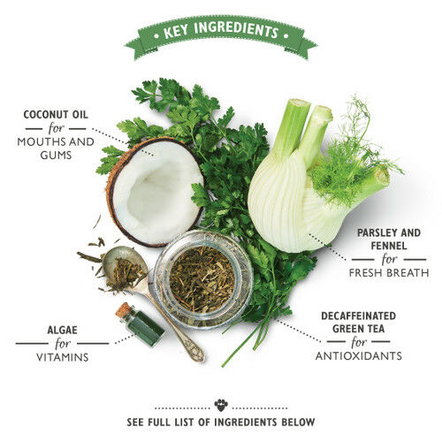 We believe all pets deserve proper food, and that’s still true when it comes to dental chews. Because dogs eat their ‘toothbrush and toothpaste’ (their dental chew), it’s important that their chew is as kind to their tummy as it is to their teeth. Woofbrush has been carefully crafted with help from our pet dental expert to make sure it works brilliantly, and uses top notch natural like parsley, coconut oil and fennel for a proper clean without the added nonsense.