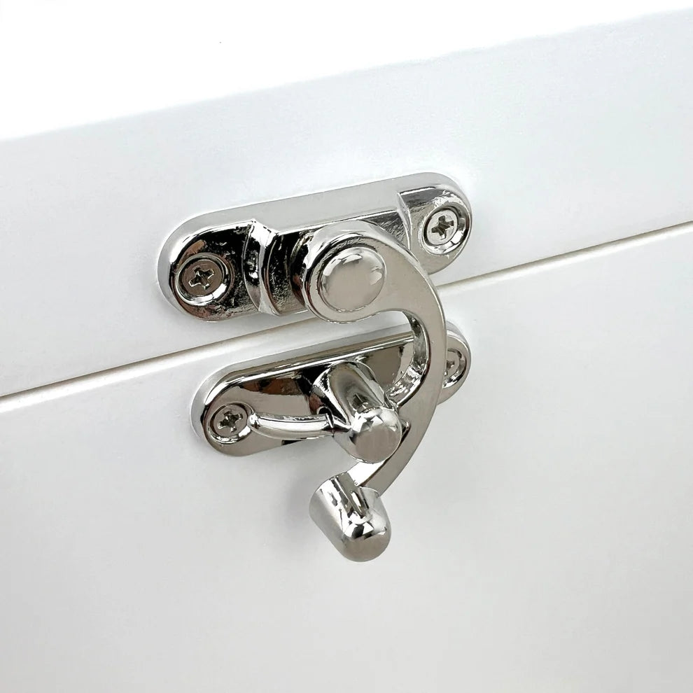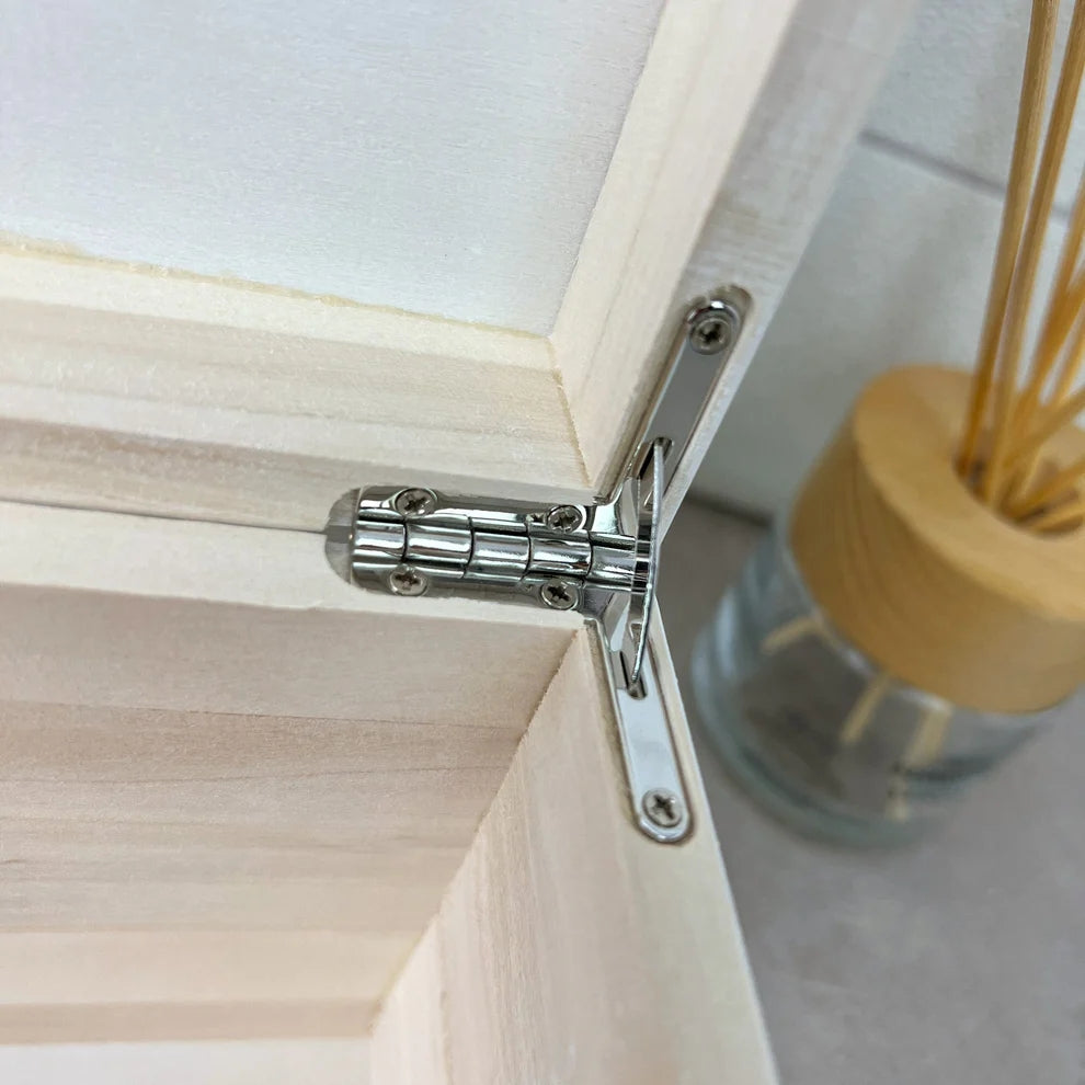These white keepsake boxes are hand painted on natural pine wood. Finishes may vary on individual boxes and there may be some slight blemishes on the surface. They have high quality metal hinges and clasp, ensuring a secure fastening for the contents inside.