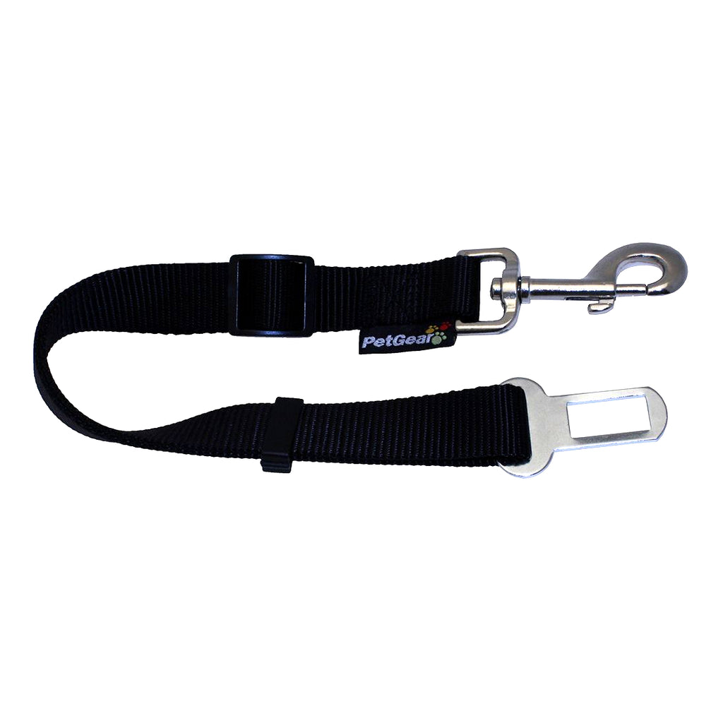 The Dog Seat Belt by Pet Gear is a comfortable, adjustable belt that connects a harness to a seat belt lock.