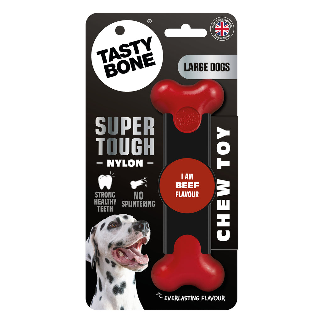 Our Super Tough range is made from 100% virgin nylon; guaranteed to last. Like all of our nylon chews, this TastyBone product has been tested on the most vigorous of chewers.