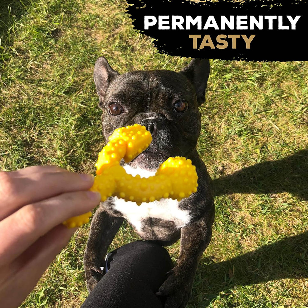 Made from 100% virgin nylon, it is guaranteed to last. Uniquely infused with irresistible flavours right through to the core, your dog will never get bored, as the flavour will last for the lifetime of the bone. With every bite your dogs gums and teeth become stronger and healthier, protecting against infections, tooth loss and vets fees.