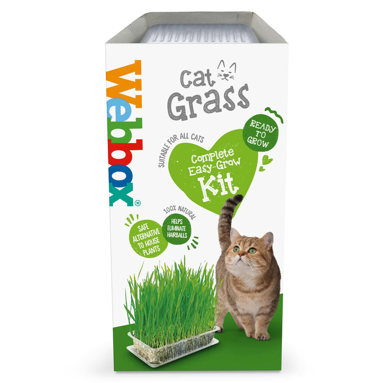 Webbox Cat Grass is a 100% natural treat suitable for all cats. Webbox Cat Grass is a complete easy to grow kit with 4 simple steps! It is designed to help eliminate hairballs that accumulate in the stomach through the cat’s regular grooming routine, thus also supporting healthy digestion. It is also a safe alternative to house plants and the perfect addition to both indoor and outdoor cat’s diets. The complete kit includes mineral soil, seeds and tray with lid, just add water!